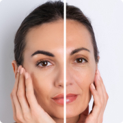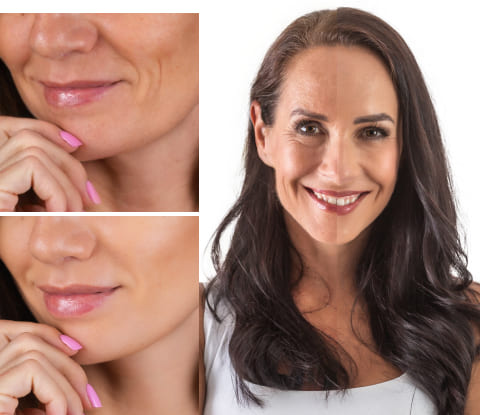Спостерігайте, як шкіра розгладжується та зникають зморшки, вирівнюється тон, шкіра починає сяяти.